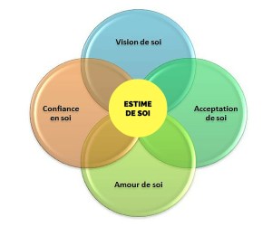 Amour de soi et Acceptation de soi : c’est le fait de nous accepter quels que soient nos qualités, défauts, forces et faiblesses et d’en être conscients. L’amour de soi est majoritairement donné par la famille qui permet de consolider ou au contraire de cristalliser l’image que l’on a de soi. Lorsque l’on ne s’aime pas soi-même, il est difficile de croire en l’amour que les autres peuvent nous porter. On ne comprend pas comment les autres peuvent nous aimer. L’amour de soi est donc bien l’assise de l’estime de soi la plus cachée et la plus intime. Il est donc très difficile de cerner le degré exact de l’amour que quelqu’un se porte.