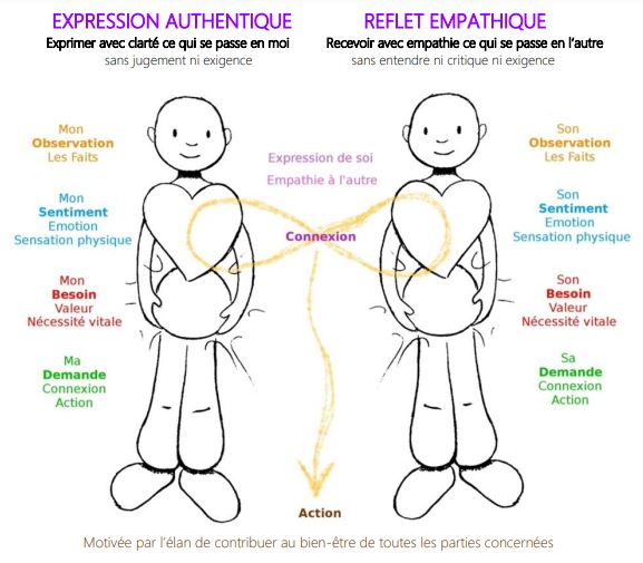 1- Tout d’abord, je vous invite à vous familiariser avec une partie de la démarche utilisée en CNV (Communication Non Violente) en lisant cet article.